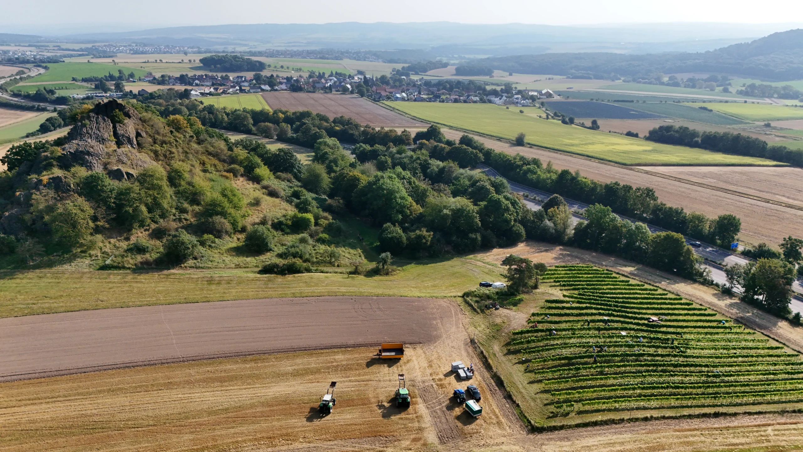 Durch die Lage direkt neben der Autobahnauffahrt der Bundesstraße 254 auf die A49 kann man den Weinberg am Neusselsberg quasi „im vorbeifahren“ entdecken.