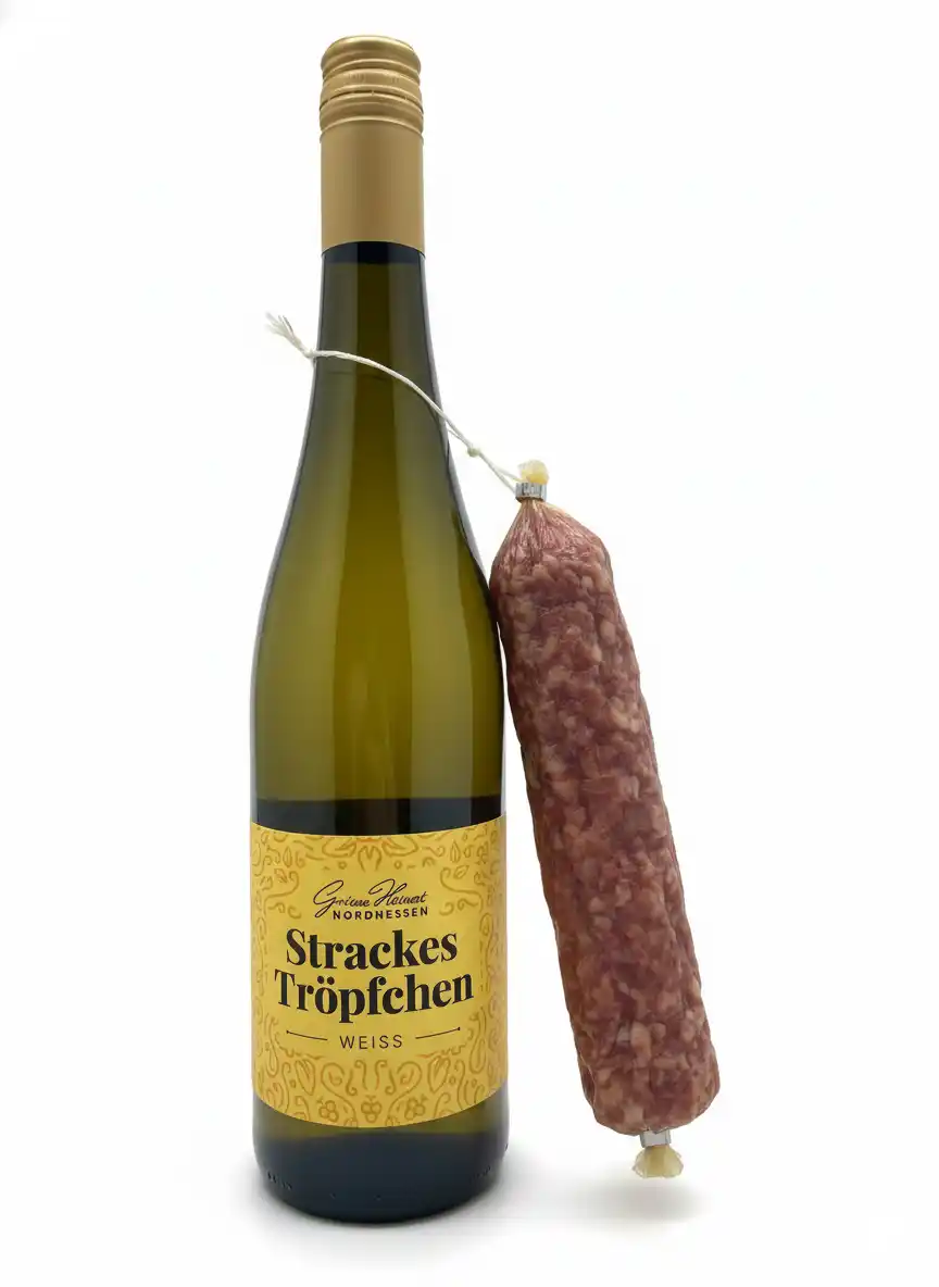 Ein Wein, wie er nordhessischer kaum sein könnte: Strackes Tröpfchen wurde eigens geschaffen, um die traditionsreiche Ahle Wurscht – im Dialekt auch „Stracke“ genannt – perfekt zu begleiten. Fruchtige Aromen von Pfirsich, Zitrus und exotischen Früchten verleihen ihm seine frische und harmonische Art.